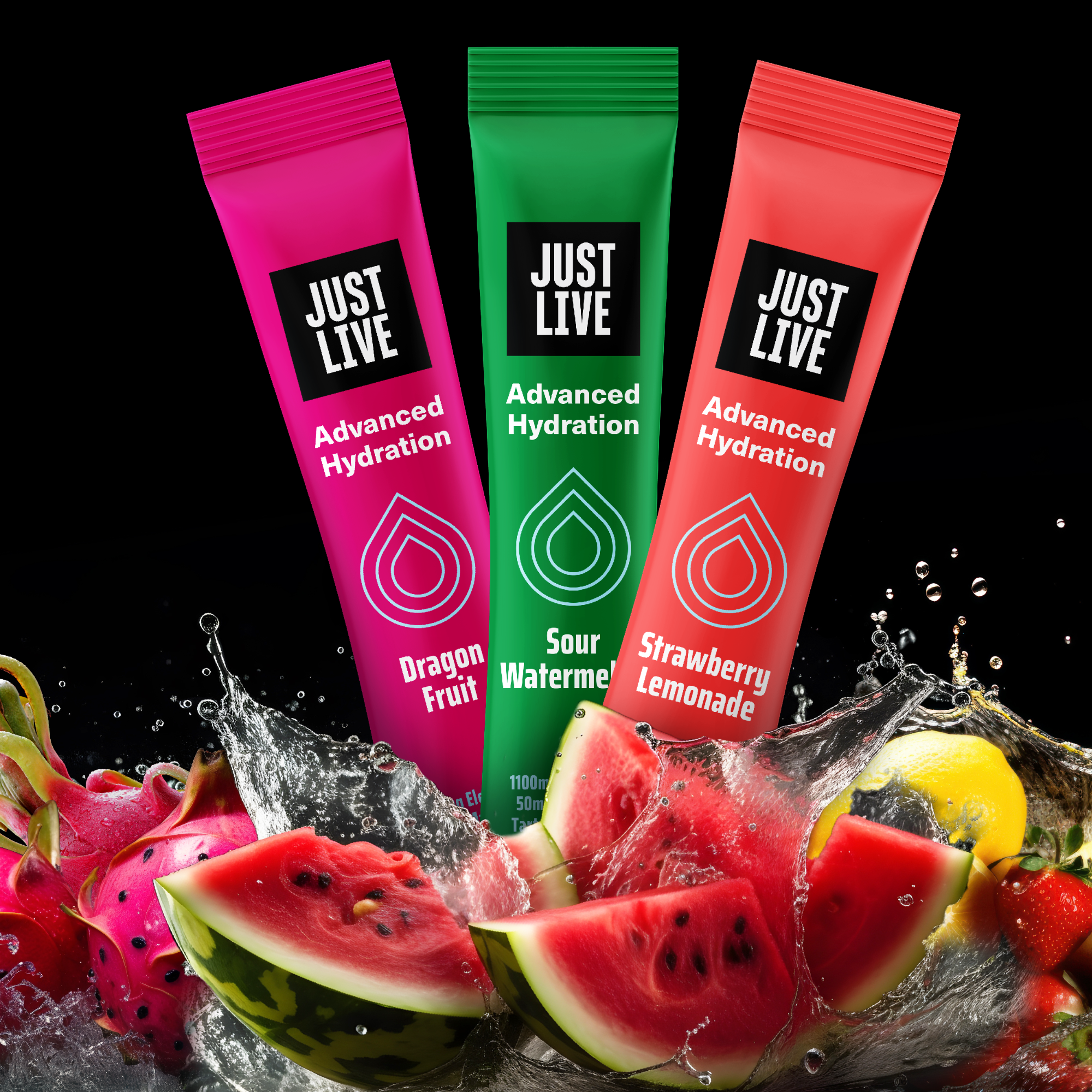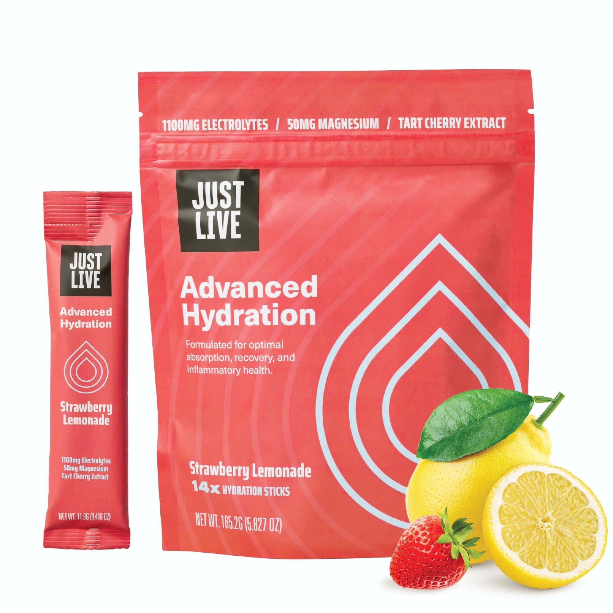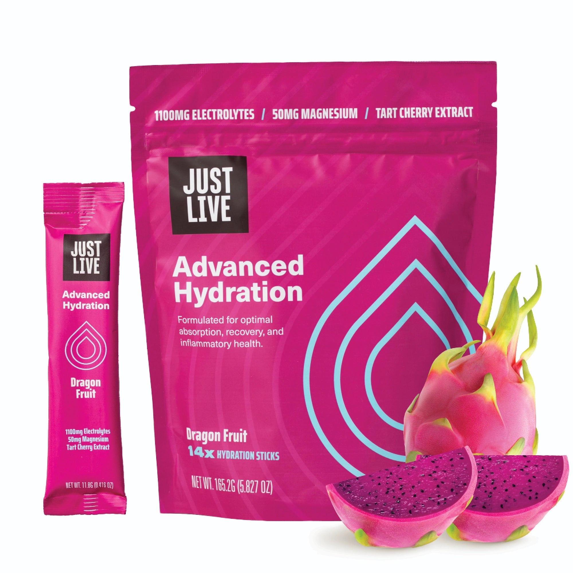 JUST LIVE HYDRATION IS THE PERFECT BALANCE OF VITAMINS, MINERALS, AND ELECTROLYTES PAIRED WITH CLINICALLY STUDIED TART CHERRY EXTRACT TO KEEP YOU HYDRATED WHILE FIGHTING INFLAMMATION.